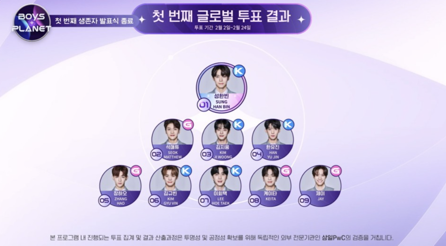 엑소의 러브미맞는 팀 중 그룹 K는 특히 인기가 많은 그룹이라 대부분의 사람들이 빠지지 않을 것이라고 예측했고 그 예측이 맞았다. 성한빈이 1위, 김규빈이 6위, 이회택이 7위를 차지해 데뷔조에는 세 명이 들어갔다. 오성민, 이예담, 이정현이 모두 다음 라운드에 진출했다. 다만 이회택(후이)이 생각만큼 힘을 발휘하지 못하는 게 안타깝다.