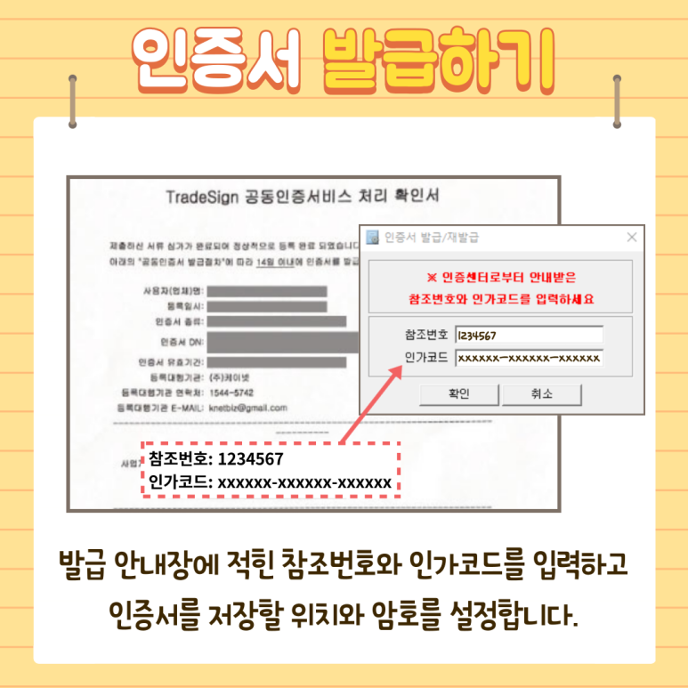 3. 3. 인증서 발급 안내장에 따라 발급합니다.
