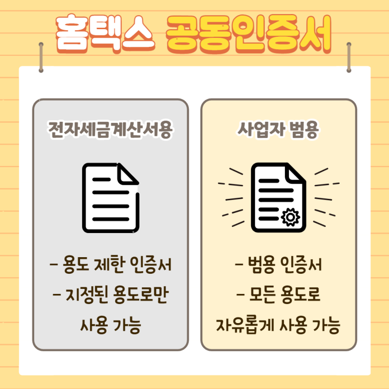 홈택스 공인인증서는 용도에 따라 2가지로 구분할 수 있습니다