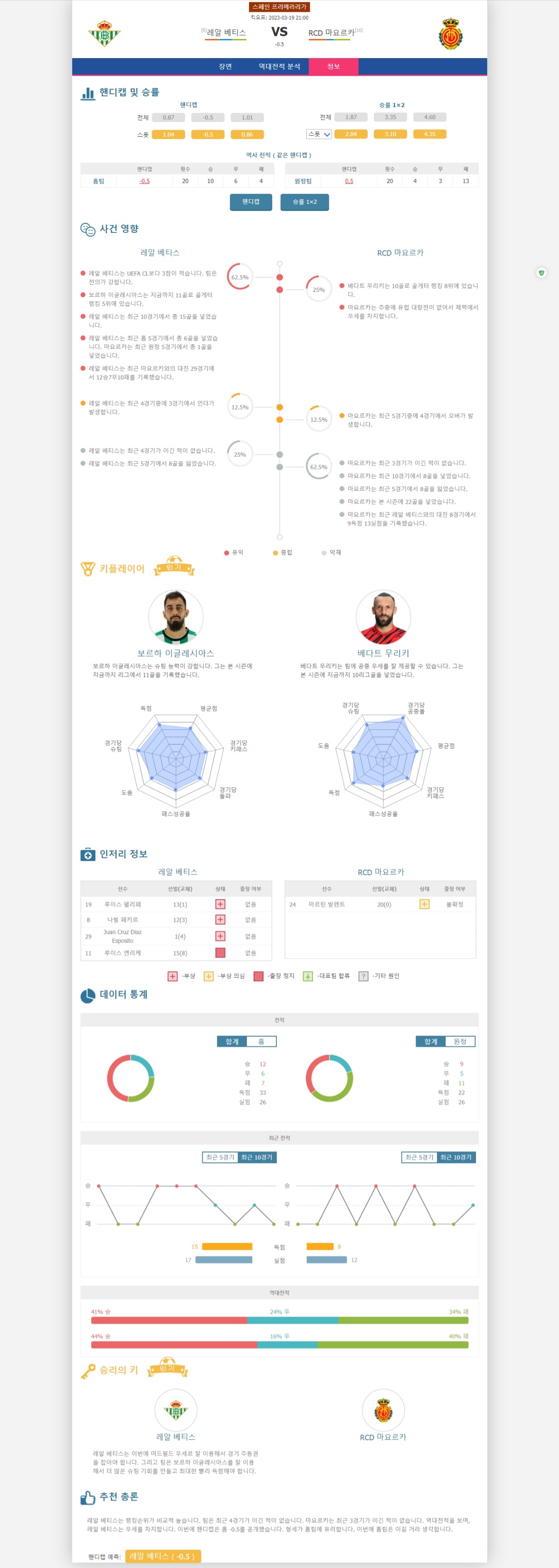 3월 19일 축구 분석 Real Betis vs RCD Mallorca
